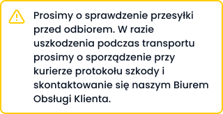 Te rugăm să verifici coletul la primire. În cazul deteriorărilor în timpul transportului, te rugăm să completezi de față cu agentul de curierat protocolul de deteriorări și să contactezi Departamentul de Servicii Clienți.